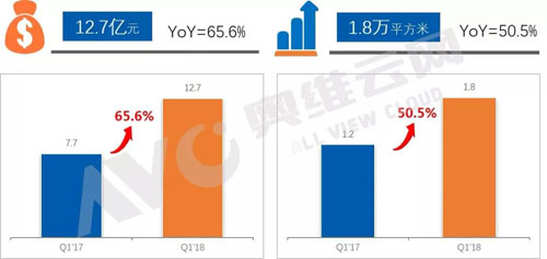 根据《中国小间距LED产业季度分析报告》显示,2018年第一季度中国内销市场小间距LED显示屏销售额12.7亿元,同比增长65.6%,销售面积实现50.5%的同比增长,达1.8万平方米。整个市场呈现前所未有的“火爆”状态。预计2018-2020年中国小间距LED市场规模将上升44%左右,行业持续高增长。