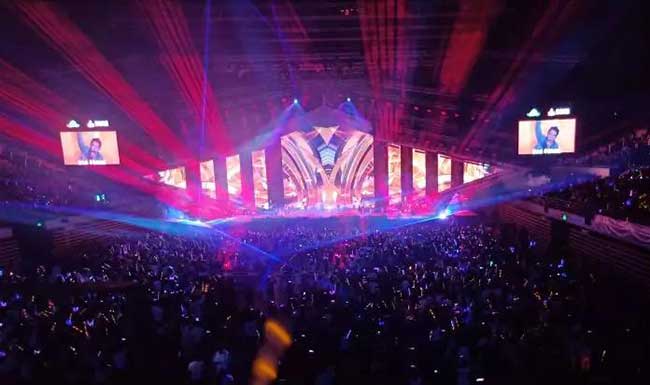 产品案例二:深圳湾体育中心“金曲歌王”萧敬腾演唱会--此项目舞台背景屏kaiyun开云镂空屏P6.944,整体面积1000平方,庞大的舞台制作规模,根据舞台造型多样化搭建,利用屏体自身通透、轻薄、炫彩特点,强化舞台空间的纵向视觉效果。同时完全不阻碍舞台设计留给灯光悬挂和发挥的空间,给整个舞台渲染了一定的气氛和动感。