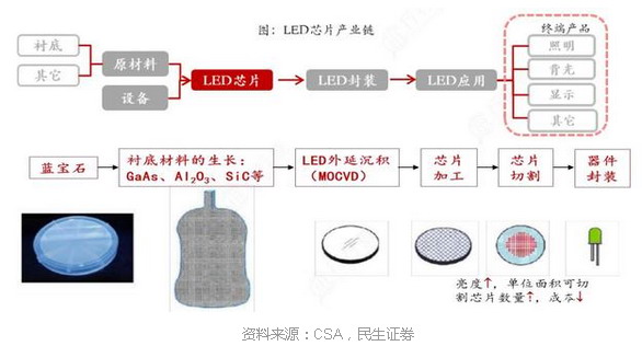产业链的下游则是使用蓝宝石LED衬底进行外延生长、芯片加工或将蓝宝石用于消费电子产品。