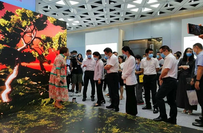 kaiyun开云总裁龙平芳女士亲自向各位领导讲解了kaiyun开云的企业定位,以及现场的两款核心产品;其中之一,“沉浸式互动视觉场景”是基于LED显示屏+3D互动数字技术,形成沉浸式视觉场景,主要应用与电影拍摄,文旅,夜游等领域;实现这种沉浸式显示体验,除了需要高端的屏幕显示技术,亦需要内容产业能够提供充分的制作、计算和存储能力。它融合了VR/AR、计算机多媒体技术,视觉内容,呈现新的“显示概念高地”。宝安区郭子平区长现场表示“想不到航城还有这样的好企业,要好好支持!”